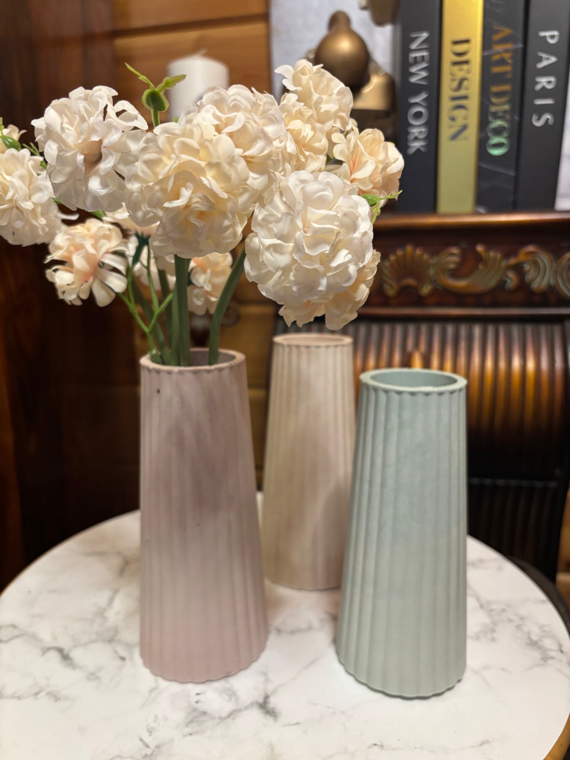 Kaunis ja ajaton maljakko, saatavana valkoisena, vaaleanpunaisena tai vaaleansinisenä